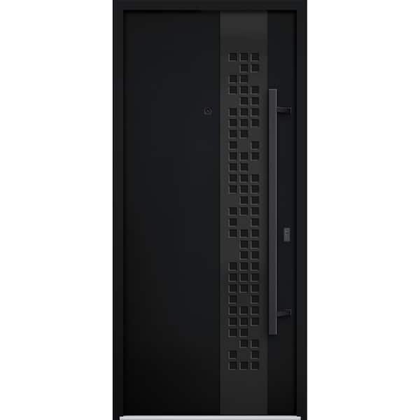 6078 36 in. x 80 in. Left-hand/Inswing Black Enamel Steel Prehung Front Door with Hardware