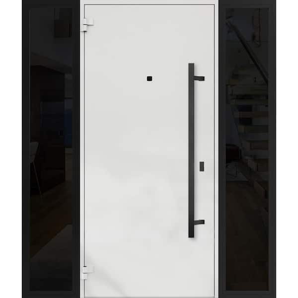 6078 60 in. x 80 in. Right-hand/Inswing 2 Sidelights Black Enamel Steel Prehung Front Door with Hardware