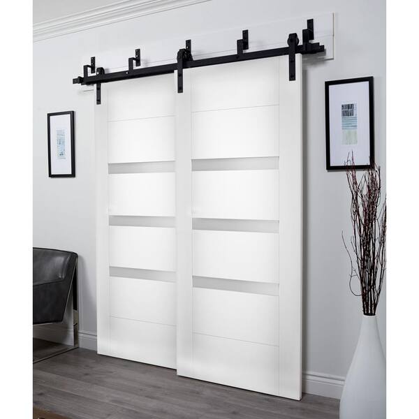 64 in. x 96 in. Single Panel White Solid MDF Sliding Doors with Bypass Barn Hardware