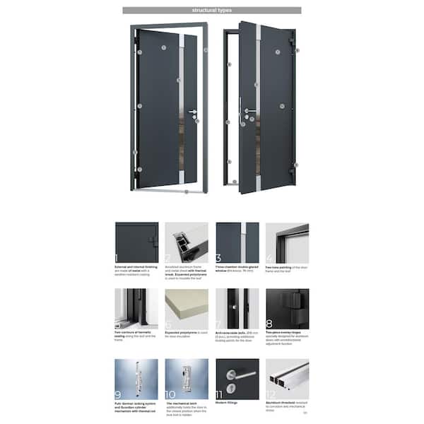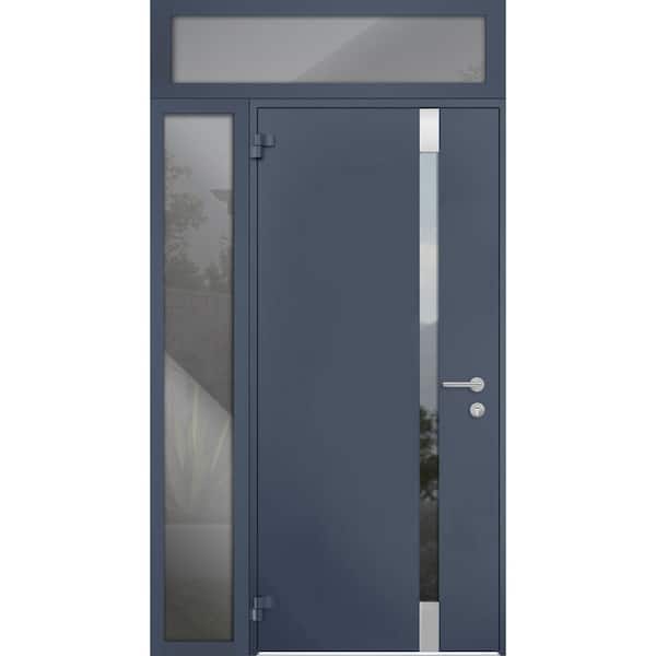 48 in. x 96 in. Left-Hand/Outswing Tinted Glass Gray Graphite Steel Prehung Front Door with Hardware
