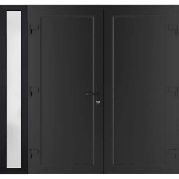 72+ 14 in. x 80 in. Right-hand/Inswing Frosted Glass Matte Black Steel Prehung Front Door with Hardware