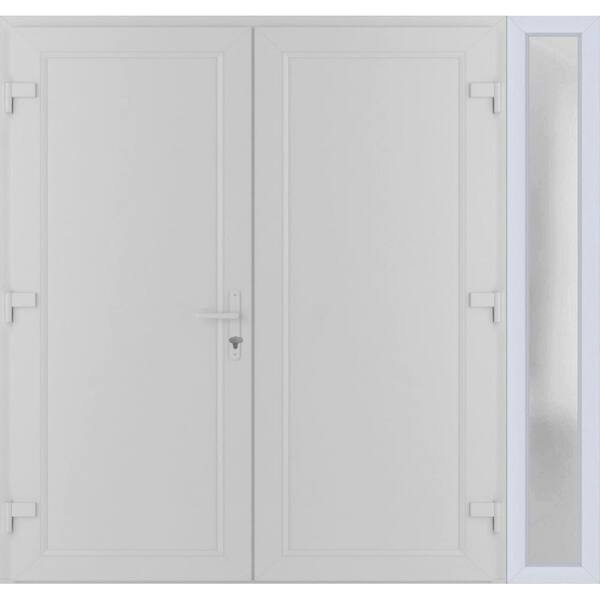 72+ 14 in. x 80 in. Right-hand/Inswing Frosted Glass White Silk Steel Prehung Front Door with Hardware
