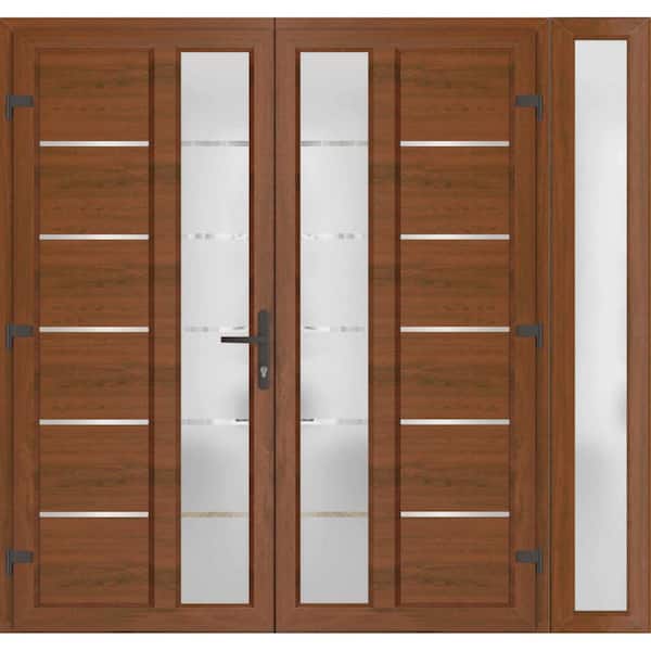 72+ 16 in. x 80 in. Right-hand/Inswing Frosted Glass Walnut Steel Prehung Front Door with Hardware