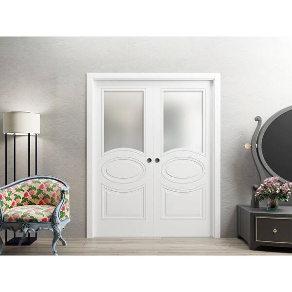 72 in. x 80 in. 2 Panel Painted White Finished Solid MDF Sliding Door with Hardware