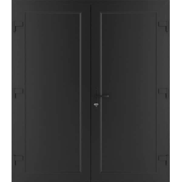 72 in. x 80 in. Left-hand/Inswing Frosted Glass Matte Black Doouble Steel Prehung Front Door with Hardware