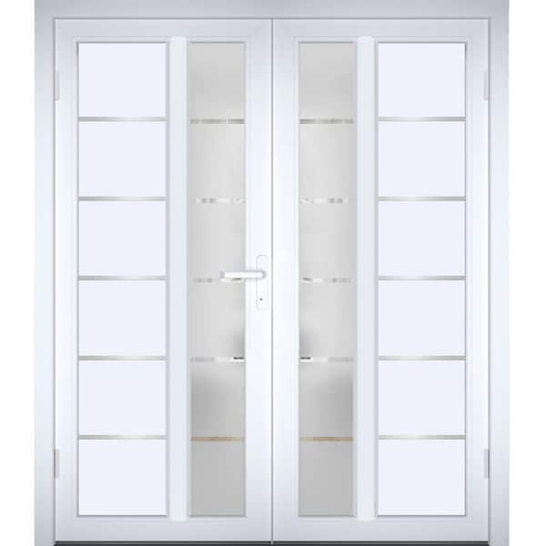 72 in. x 80 in. Right-hand/Inswing Frosted Glass White Silk Doouble Steel Prehung Front Door with Hardware