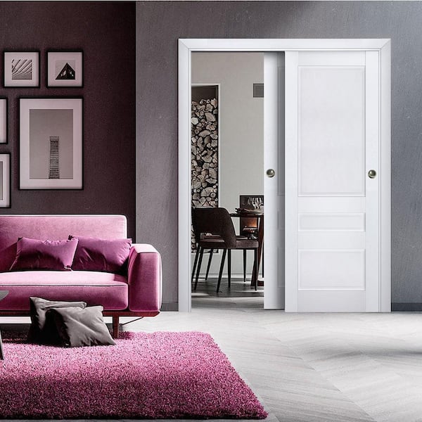 72 in. x 96 in. 2 Panel White Finished Solid MDF Sliding Door with Hardware