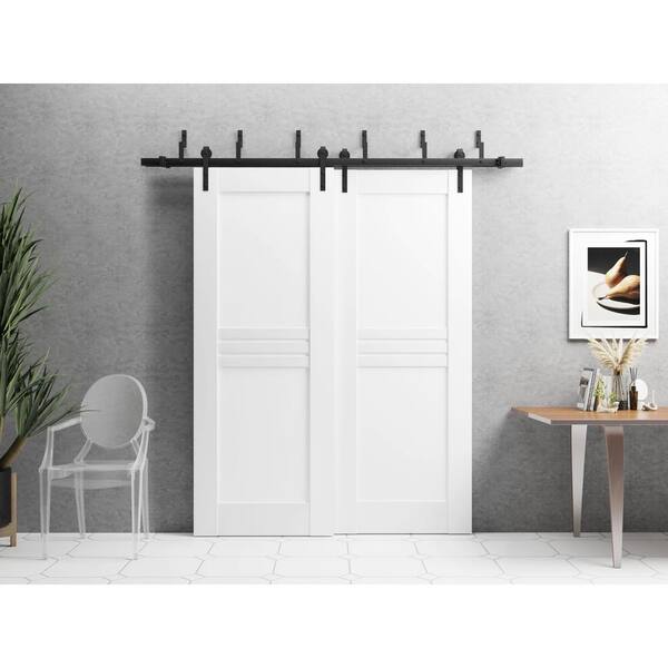 72 in. x 96 in. 2 Panel White Solid MDF Sliding Barn Door with Hardware Kit