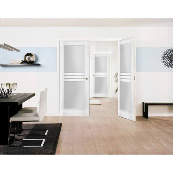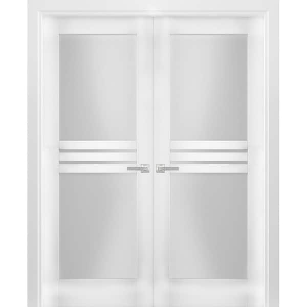 7222 36 in. x 80 in. Universal Handling Full Lite Frosted Glass Solid White Finished Pine MDF Double Prehung French Door