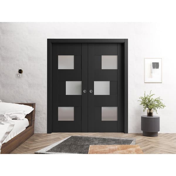 84 in. x 80 in. 2 Panel White Finished MDF Sliding Door with Hardware