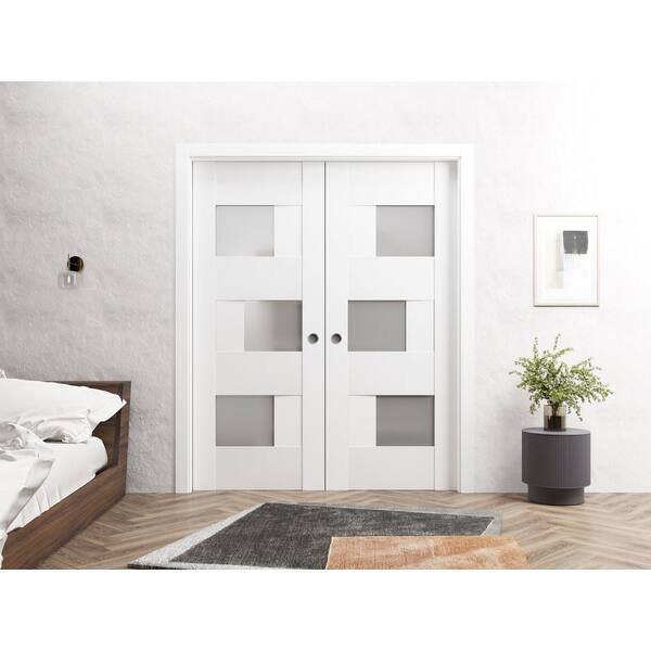 84 in. x 96 in. 2 Panel Light Grey Oak Finished Solid MDF Sliding Door with Hardware