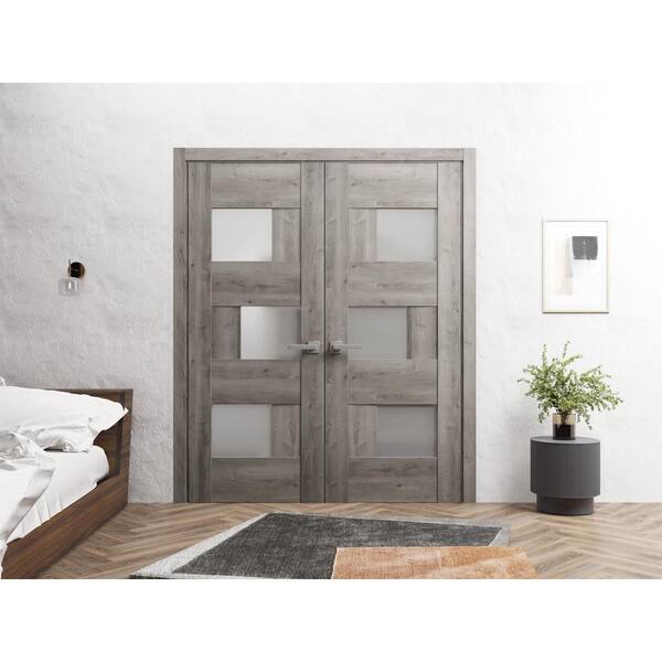 84 in. x 96 in. 2 Panel Nebraska Grey Finished Solid MDF Sliding Door with Hardware