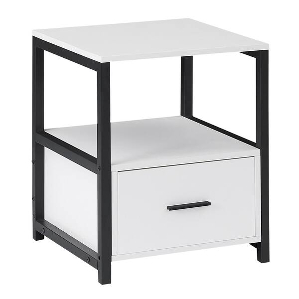 1-Drawer Black and White Square Modern End/Side Table, Night Stand with Open Shelf 22 in. H x 15.7 in. W x 15.7 in. L