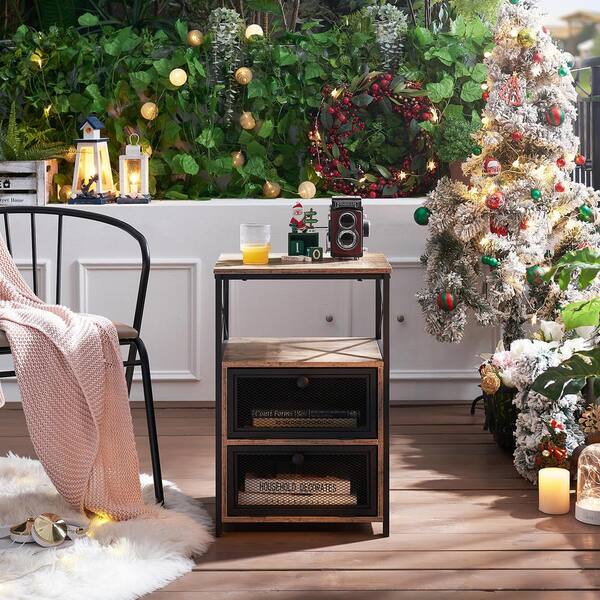 2-Pieces Gray NightStand & End Side Table w/ Storage Space & Door NightStand w/ Flip Drawers 15.7in.x 13.8in.x 23.8in.