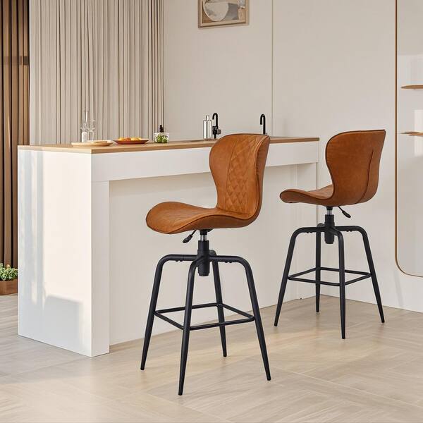 28.5 in. Swivel Bar Stools, Hight Adjustable Metal Counter Stools with Back, Brown Faux Leather Barstools (Set of 4)