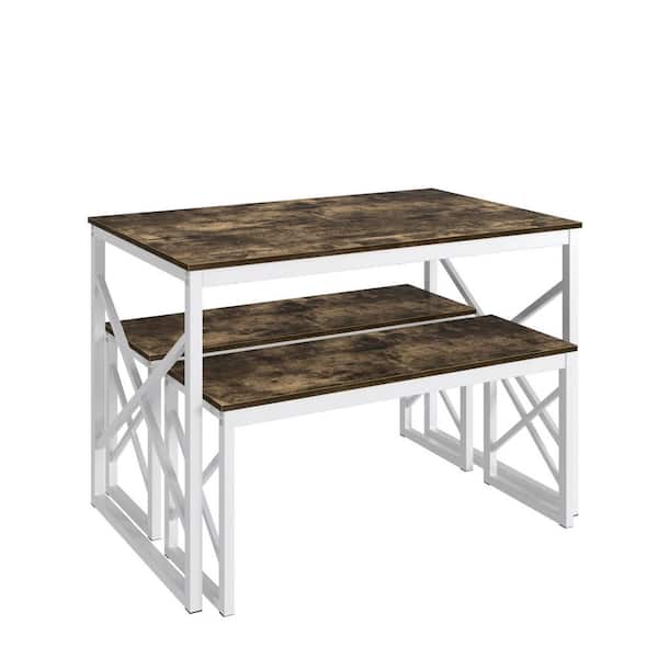 3-Piece Dining Table Set for 4,43.3 in. Kitchen Table with 2 Benches, MDF Top and Metal Dinette, Dark Brown