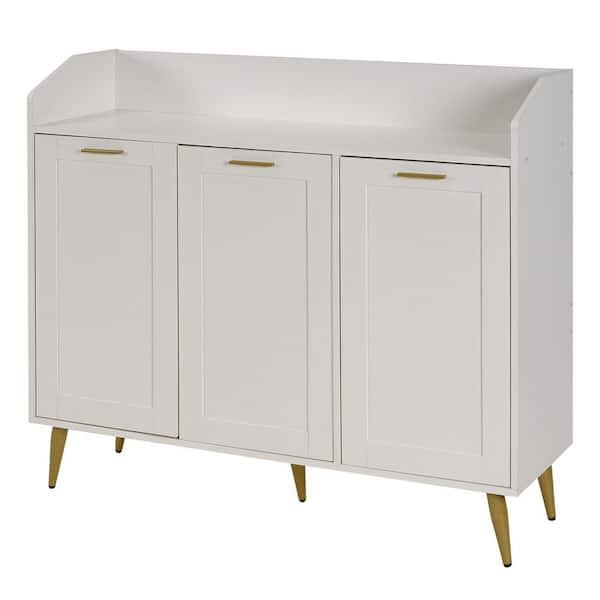 3-Tier Shoe Cabinet with Adjustable Shelves, White 42.12 in. Accent Cabinet with Side Hooks & Storage for Entryway