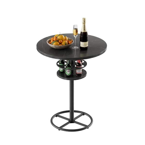 36 in. Round Bar Height Table with Wine Rack and Storage Shelf-Bistro Pub Table for Home or Kitchen Black Style 2