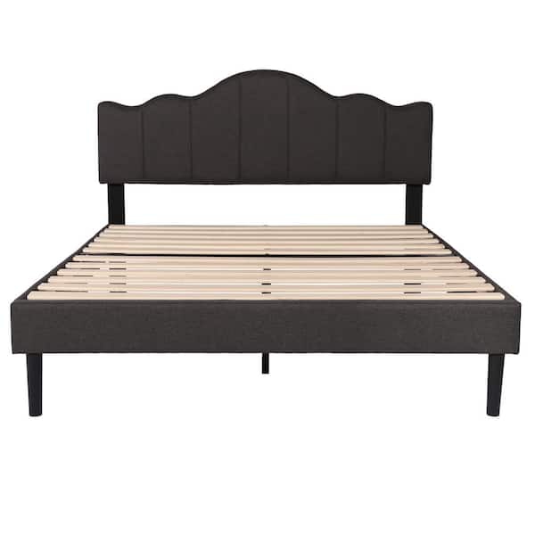 54.3 in. W Gray Full Size Platform Bed Frame/Fabric Upholstered/Adjustable Headboard Wood Slat Support