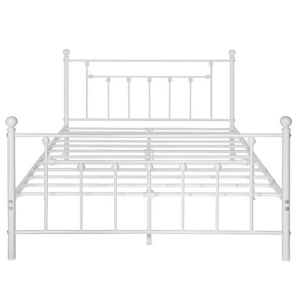 54 in. W White Full size Classic Metal Platform Bed Frame with Victorian Style Iron-Art Headboard/Footboard Storage
