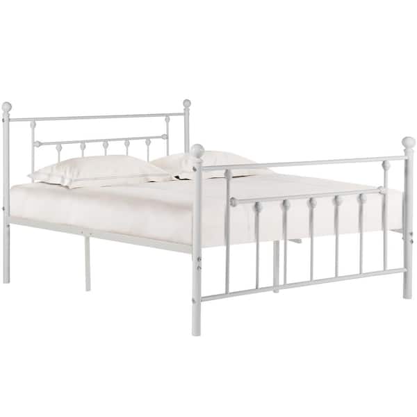 60 in. W White Queen size Classic Metal Platform Bed Frame with Victorian Style Iron-Art Headboard/Footboard Storage