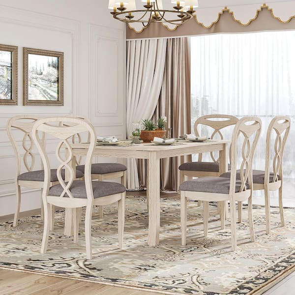 63 in. Solid Wood 7-Piece Dining Table Set with Upholstered Chairs - Gray Modern Farmhouse Style Dining Set for 6