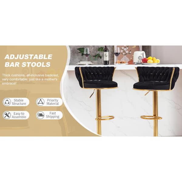 Adjustable Barstools Set, Counter Height Stools with Back and Arm, Velvet Woven Kitchen Island Stools, Black Set of 4