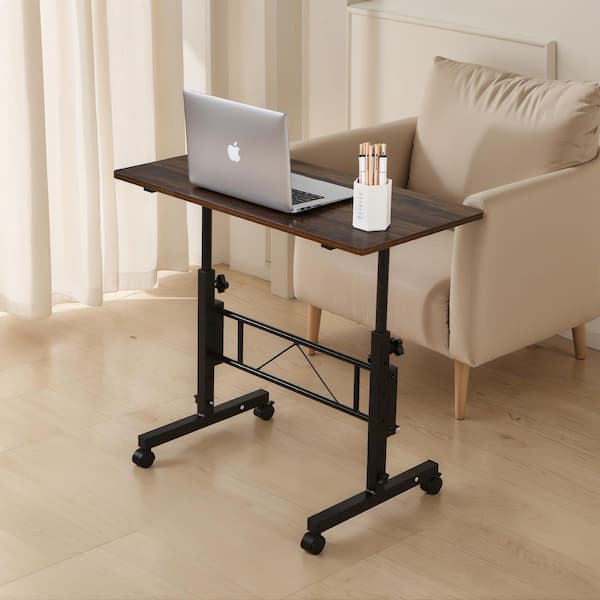 Adjustable Small Standing 31.5 in. W Computer Desk with Wheels – Mobile Laptop Table for Home Office Deep Brown