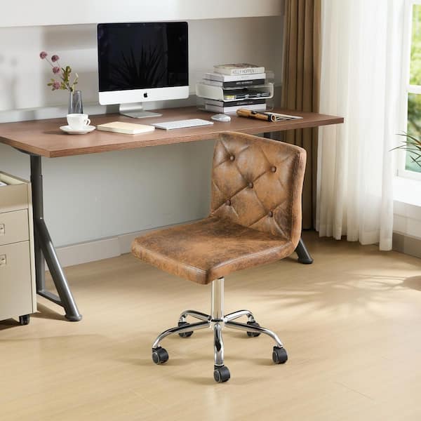 Armless Desk Chair Faux Leather Upholstered Ergonomic Task Chair in Dark Brown with Wheels
