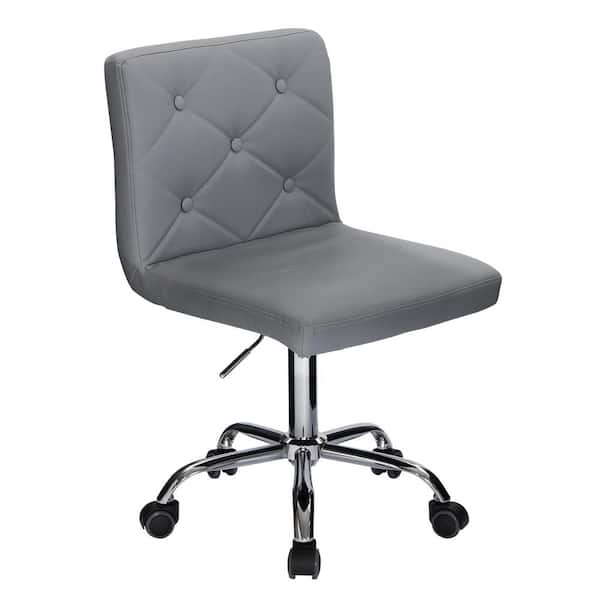 Armless Desk Chair Faux Leather Upholstered Ergonomic Task Chair in Gray with Wheels