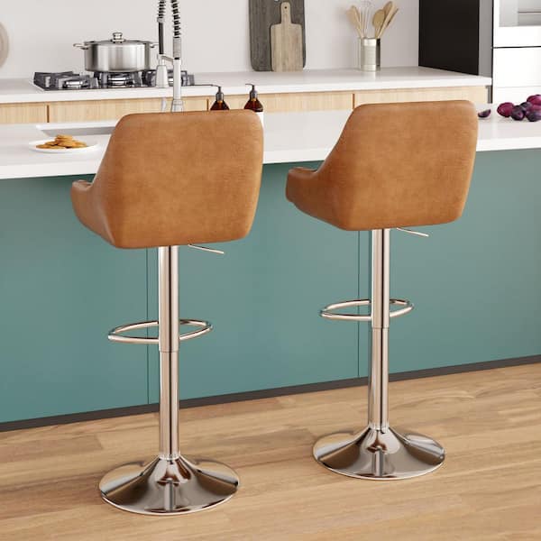 Bar Stools Set 22 in. Brown High Back Metal Bar Stools Counter Stool with PU Seat Set of 2