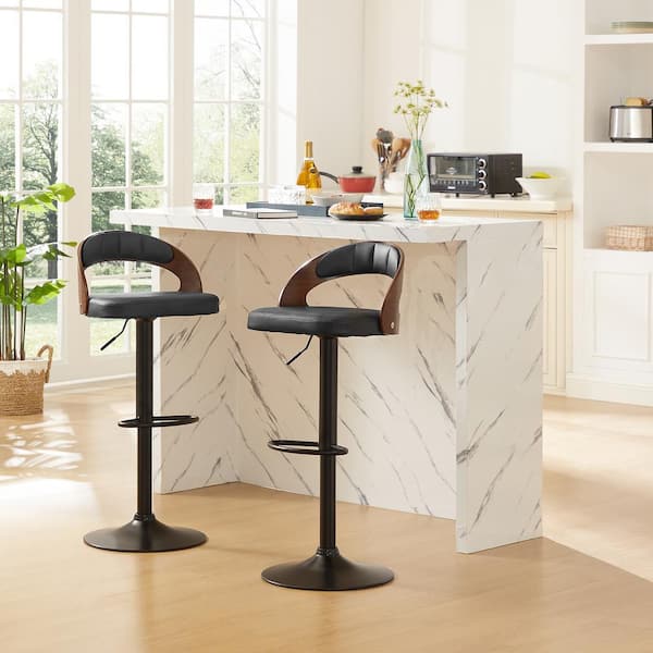 Bar Stools Set of 2, Counter Height Stool with Bentwood Back, Arm and Footrest, 24.8 in. Metal Swivel Barstools, Black