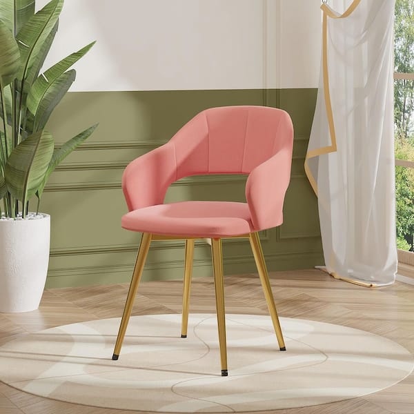 Elegant Pink Velvet Dining Chairs with Gold Metal Legs-Modern Upholstered Dining Room Chairs, Set of 4