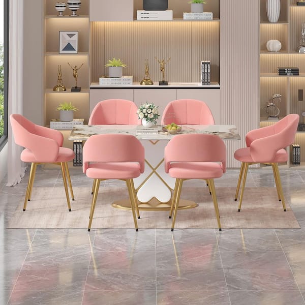 Elegant Pink Velvet Dining Chairs with Gold Metal Legs-Modern Upholstered Dining Room Chairs, Set of 6