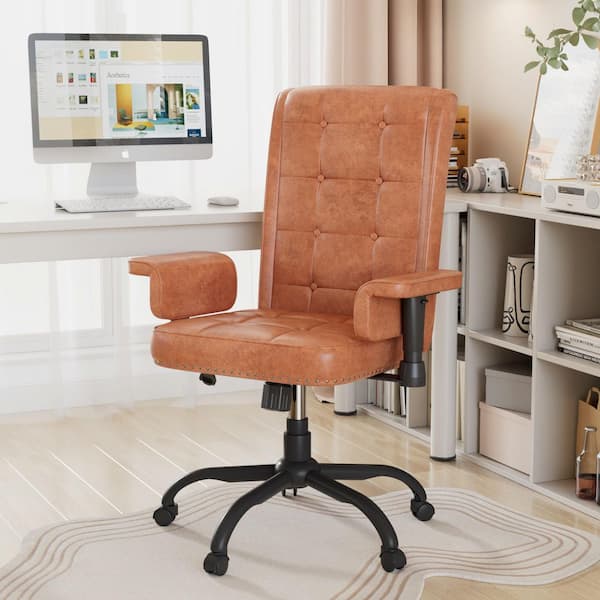 Ergonomic Leather Office Chair Adjustable Swivel Desk Chair with Armrests and Lumbar Support, Brown