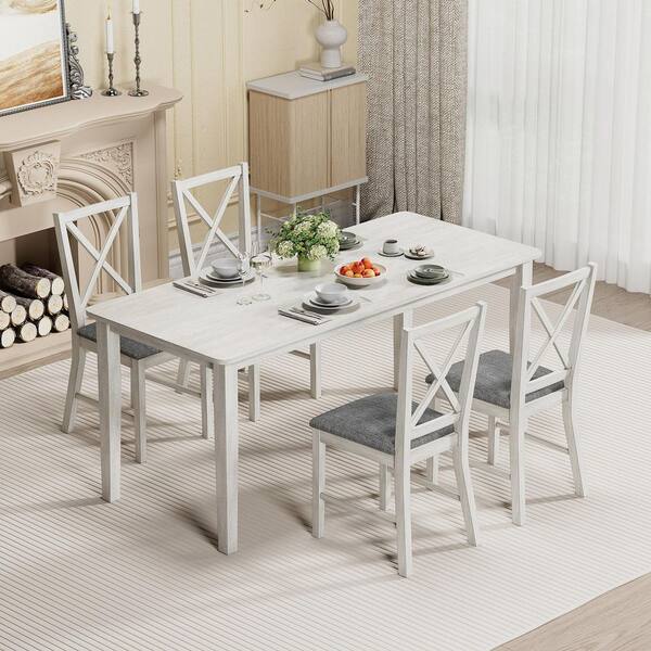Farmhouse Dining Table Set, 5-Piece Wood Kitchen Table with X-Back Chairs and Padded Seats, Gray Dining Set Style 1