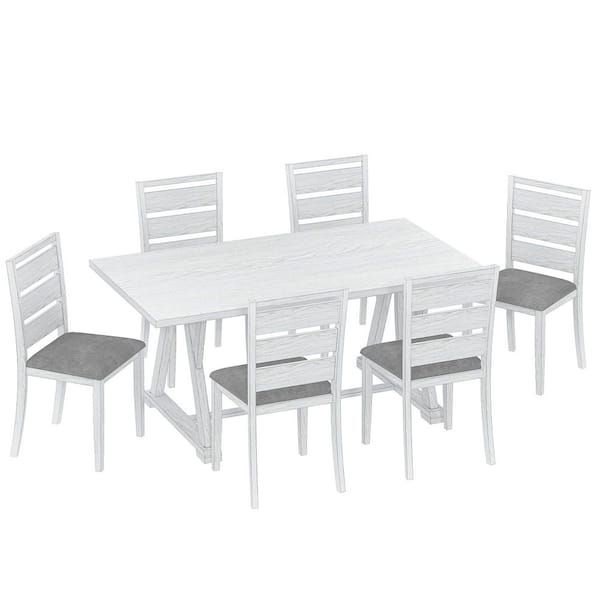 Farmhouse Dining Table Set for 6,7-Piece Solid Wood Top Table Chairs with Cushions, Vintage Gray Table and Trestle Base