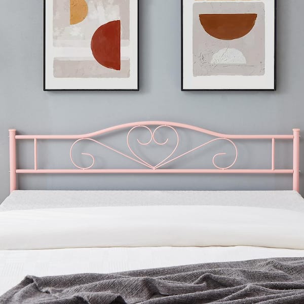 Full Bed Frame, Pink Platform Bed No Box Spring Needed, Heavy Duty Steel Slats Support Bed