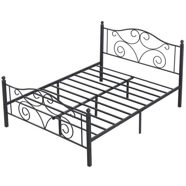 Full Size Bed Frame Support with Headboard and Footboard, No Box Spring Need Metal Platform Bed, Black, 54"W