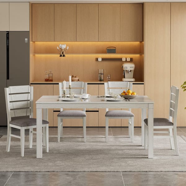 Gray Wood Dining Table Set with Cushioned Chairs - 5-Piece Modern Farmhouse Kitchen and Dining Room Table Set for 4