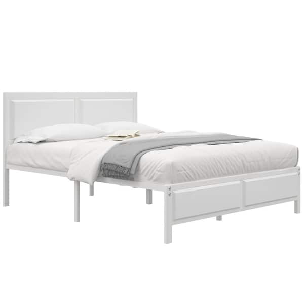 Metal Bed Frame White Metal Frame Full Size Platform Bed with Rustic Country Style Wooden Headboard and Footboard