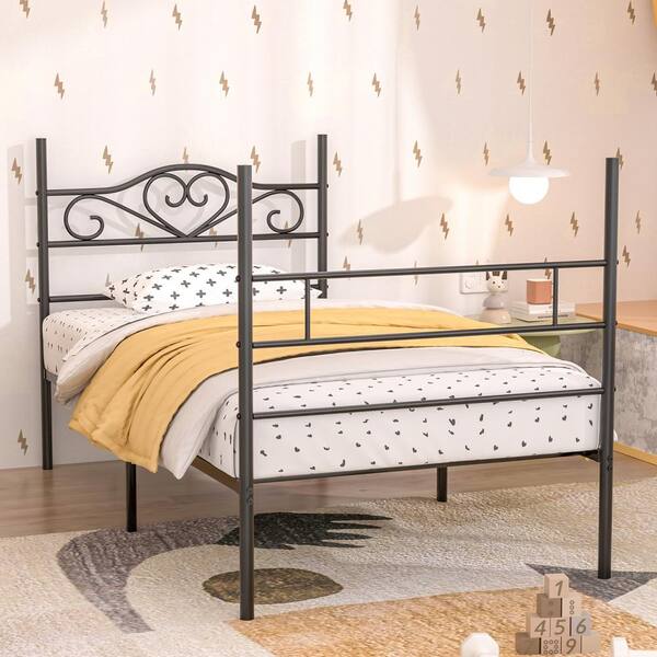 Metal Canopy Bed Frame, Black Twin Size with Headboard, Heavy Duty Steel Slats, No Box Spring Needed (Style 2)