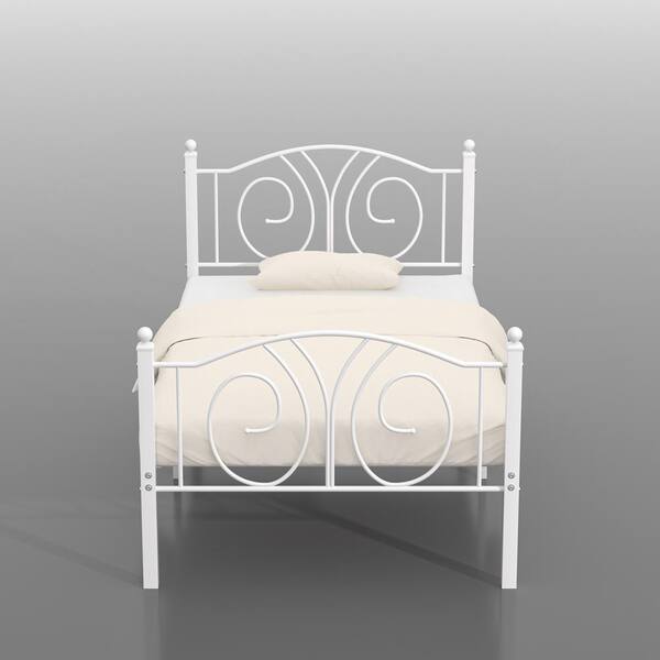 Modern Bed Frame White Metal Frame Twin Platform Bed with Heavy-Duty Steel Slats, Easy Assembly Bed, No Box Spring Need