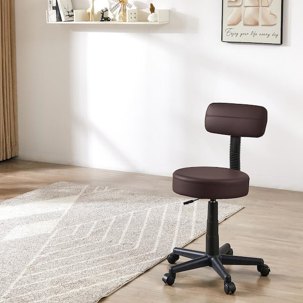 Office Stool Faux Leather Rolling Ergonomic Office Chair in Coffee Style 1 with Footrest and Wheels