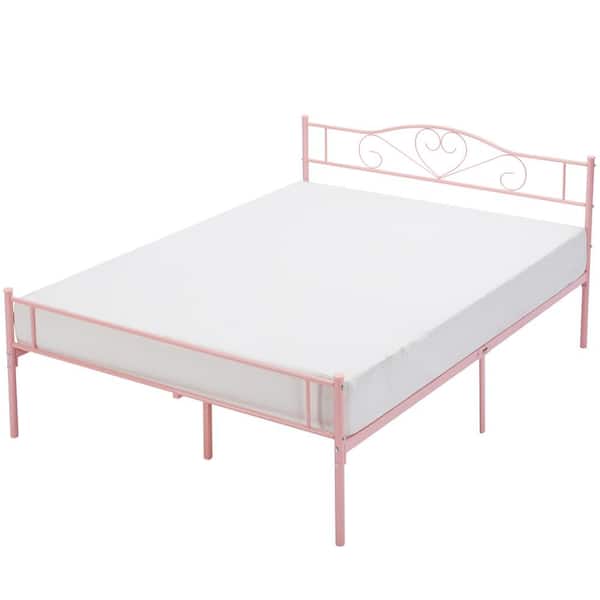 Queen Bed Frame, Pink Platform Bed No Box Spring Needed, Heavy Duty Steel Slats Support Bed