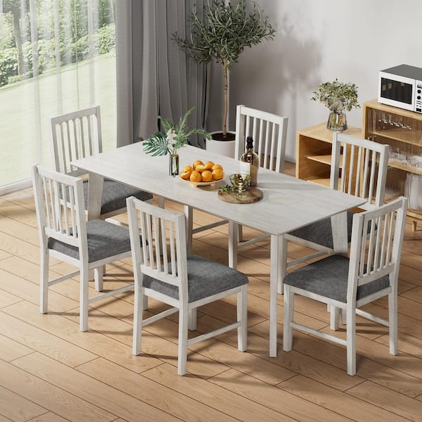 Scandinavian Dining Table Set for 6 Gray Wood Table with Cushioned Chairs Compact 7-Piece Kitchen & Apartment Dining Set