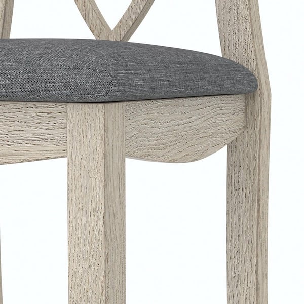 (Set of 6) Upholstered Dining Chairs, Gray Solid Wood Frame Kitchen Chairs with Twisted Ribbon Backrest, Padded Seat