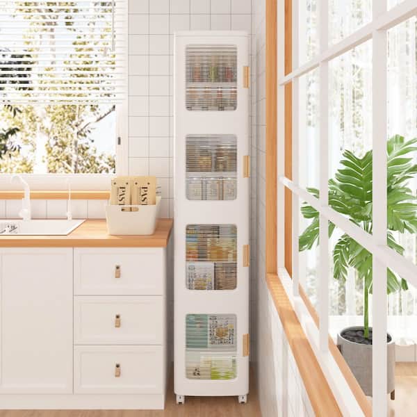 Slim Storage Cabinet White 65.4 in. Accent Cabinet Office Storage Cabinet with 4 Adjustable Shelves, Anti-Tip Design