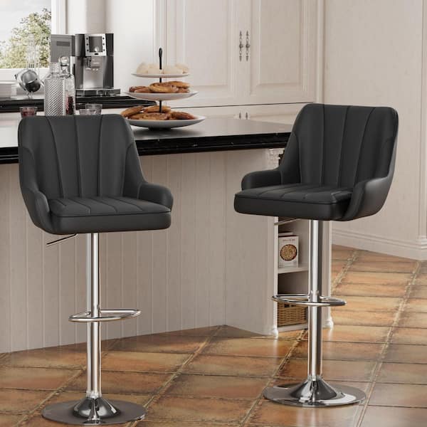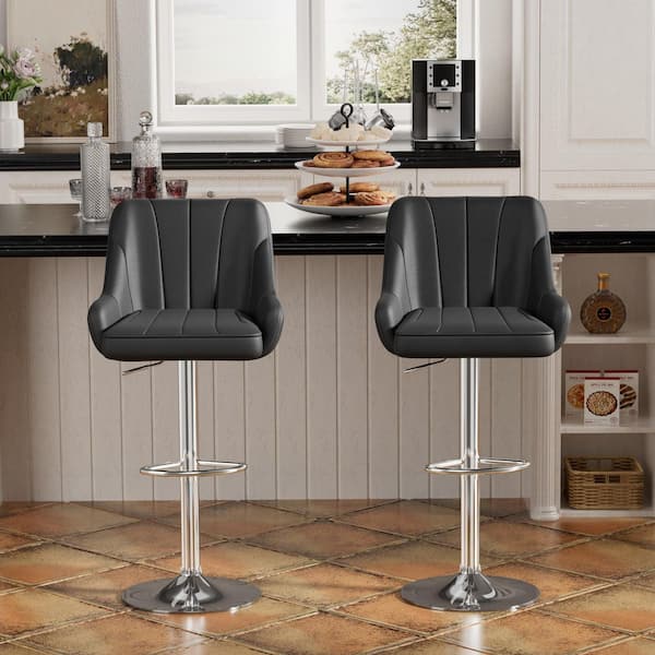 Swivel Adjustable Bar Stools with Back for Kitchen Counter Padded Counter Height Faux Leather Chairs, Black, Set of 2
