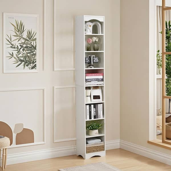 Tall Narrow Bookshelf with Adjustable Shelves – Stylish Slim Storage Cabinet, White 8 Cubes Accent Cabinet
